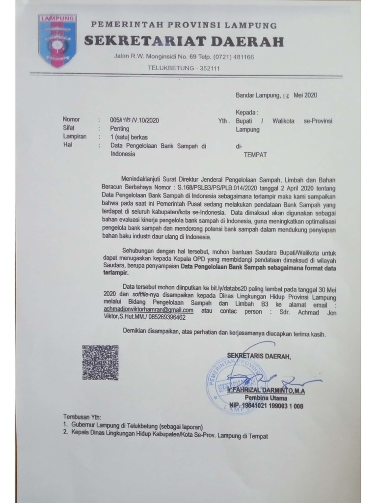 Surat Edaran Data Pengelolaan Bank Sampah Dinas Lingkungan Hidup